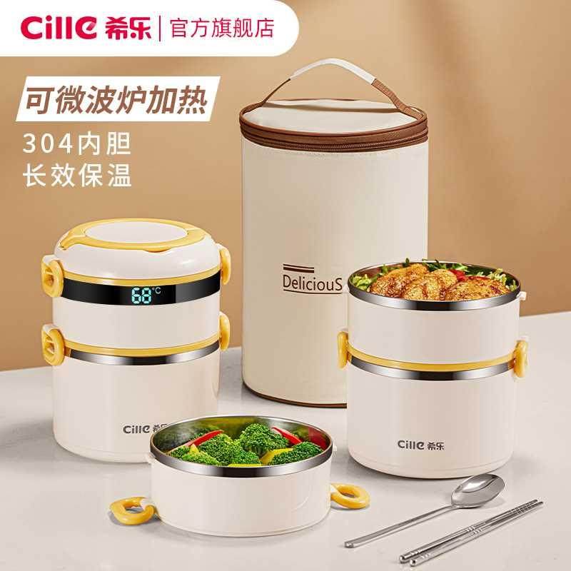 希乐超长保温饭盒秋冬季上班族可微波加热带饭桶多层便当盒餐盒碗