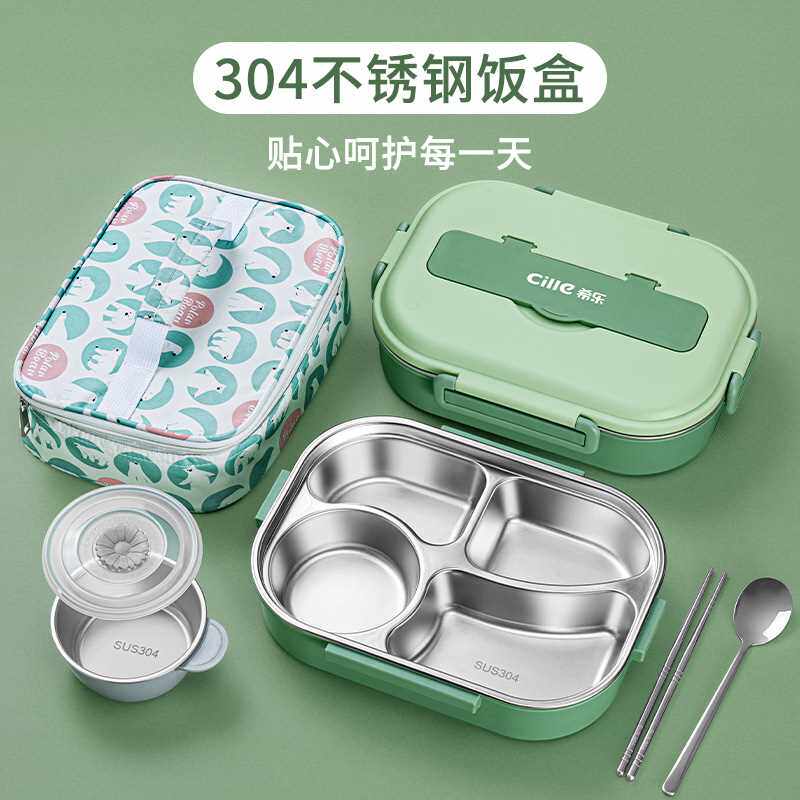 希乐304不锈钢保温饭盒小学生专用分格儿童餐盘上班族便当盒餐盒