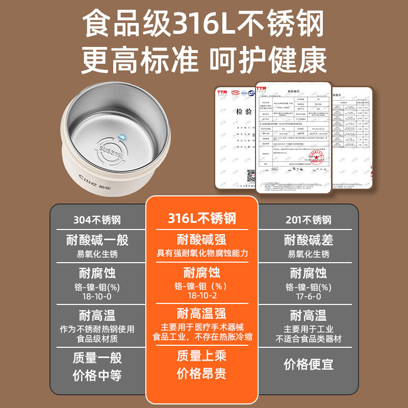 希乐保温饭盒冬天316不锈钢上班族微波加热秋季超长保温便当饭桶