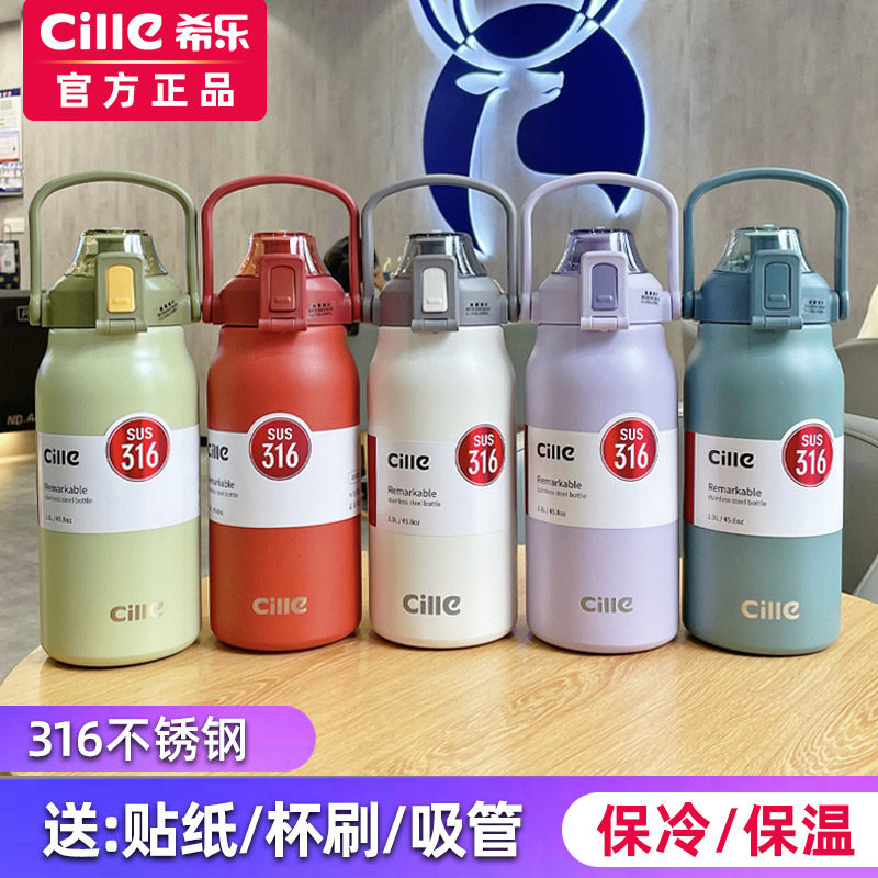 希乐保温杯女水杯大容量男士户外运动水瓶便携带吸管学生保温水壶