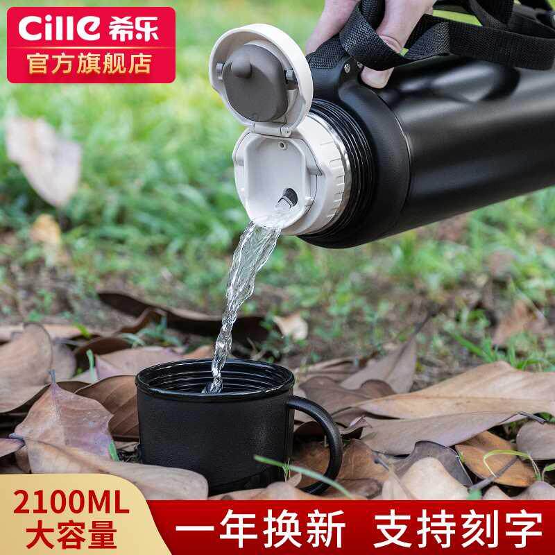希乐保温杯男超大容量不锈钢保温壶家用暖水瓶便携户外旅行水壶2L