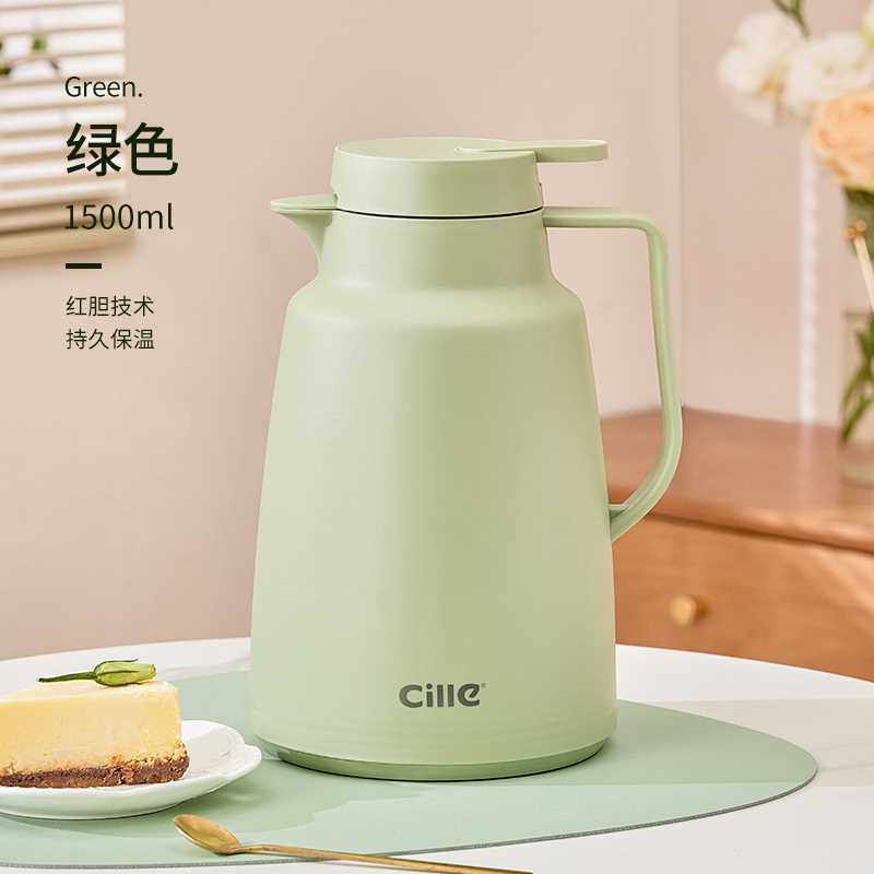 希乐保温壶大容量304不锈钢家用暖壶按压式热水瓶保温瓶嫩叶绿2.0