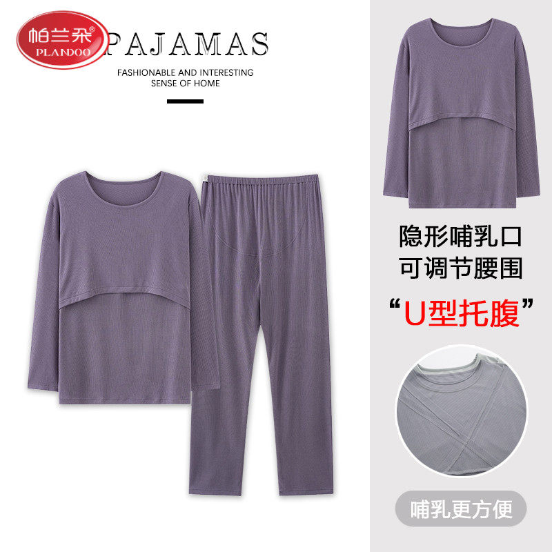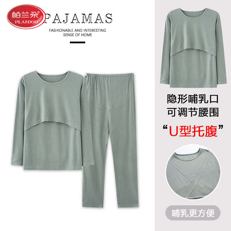 帕兰朵孕妇秋衣秋裤套装莫代尔冰丝产后哺乳睡衣春秋款打底月子服