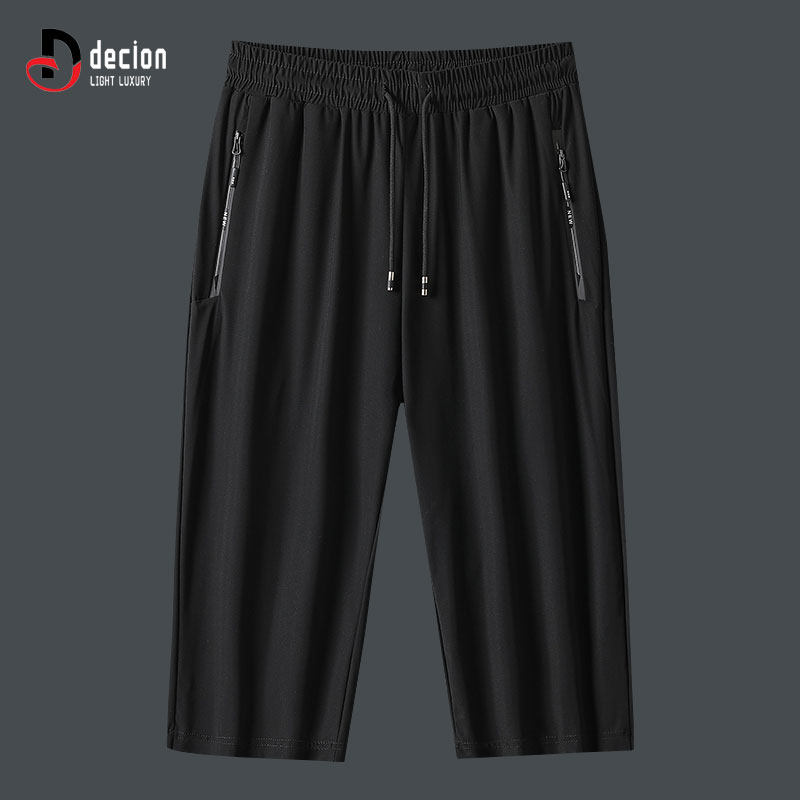 帝客堡冰丝高弹夏季七分裤男士宽松直筒运动套装大裤衩黑色短裤7