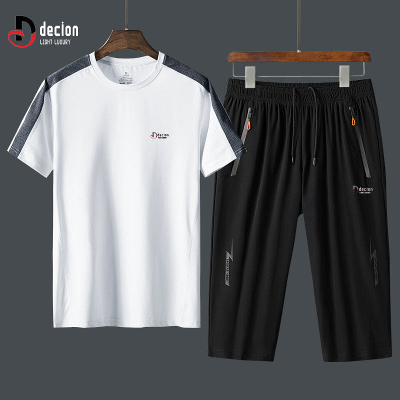 帝客堡冰丝凉感运动套装男士夏季宽松短袖短裤抗皱速干休闲七分裤