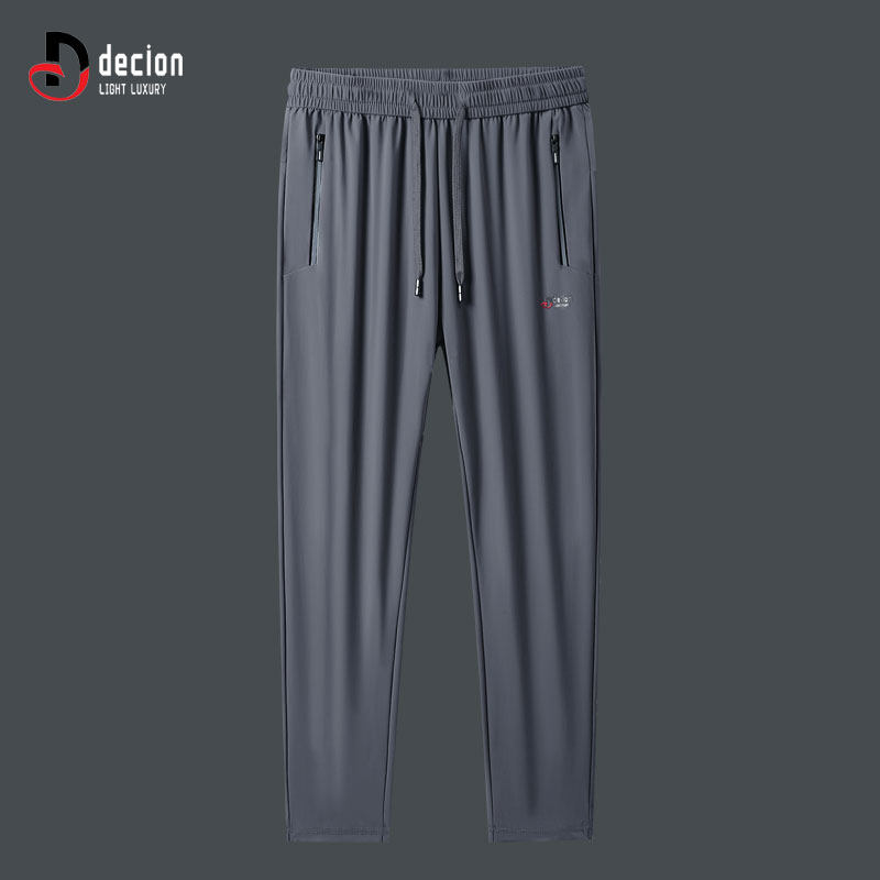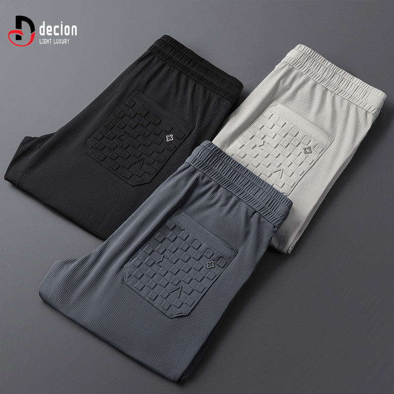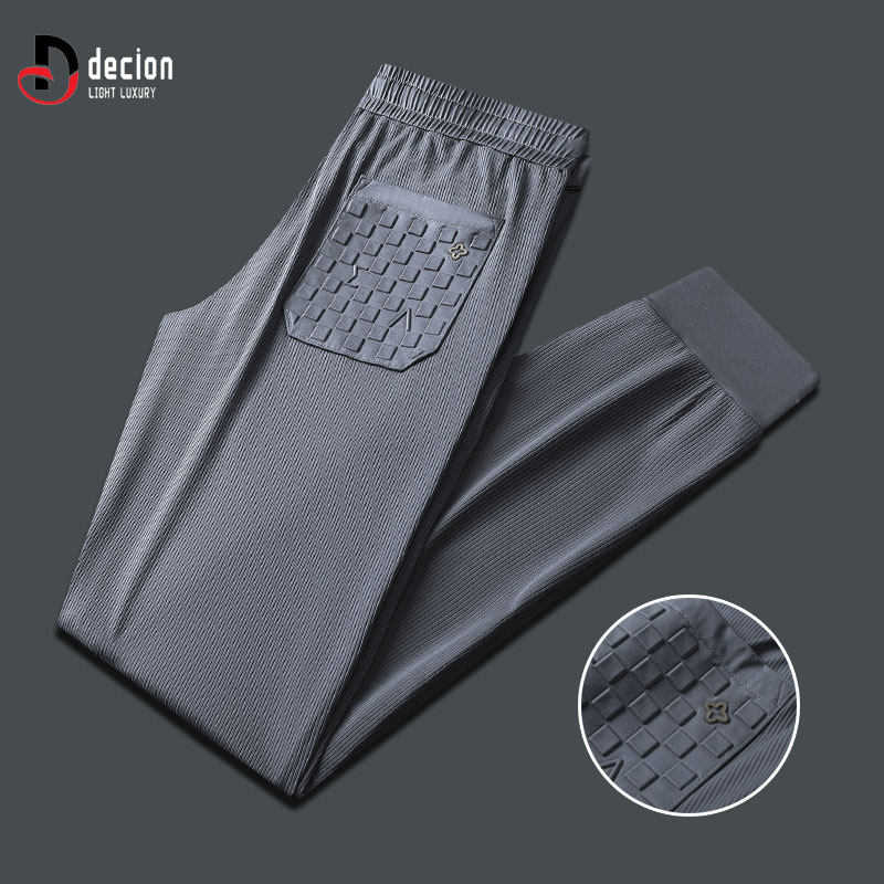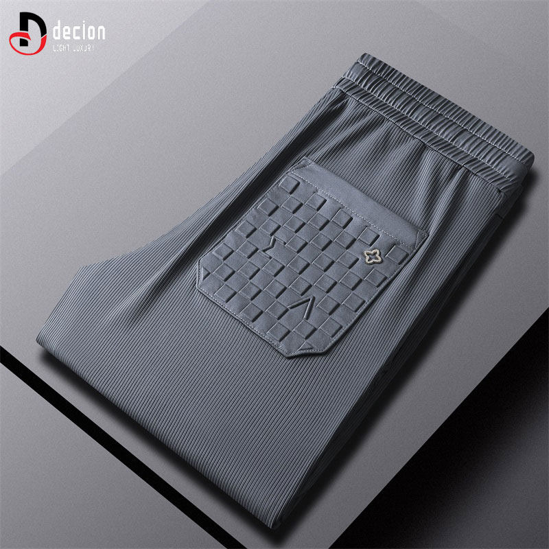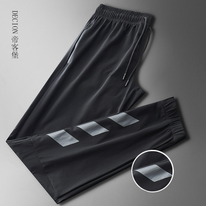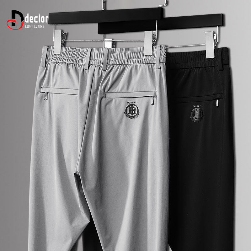 帝客堡高档带门襟夏季休闲裤男士薄款冰丝透气立体压胶直筒运动裤