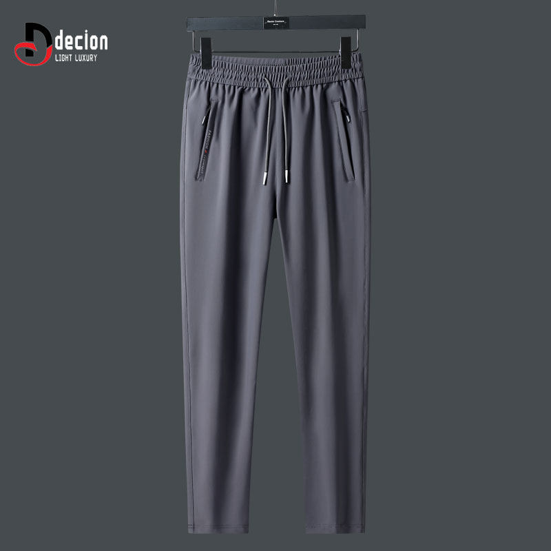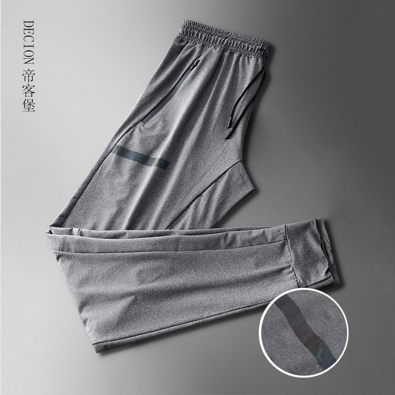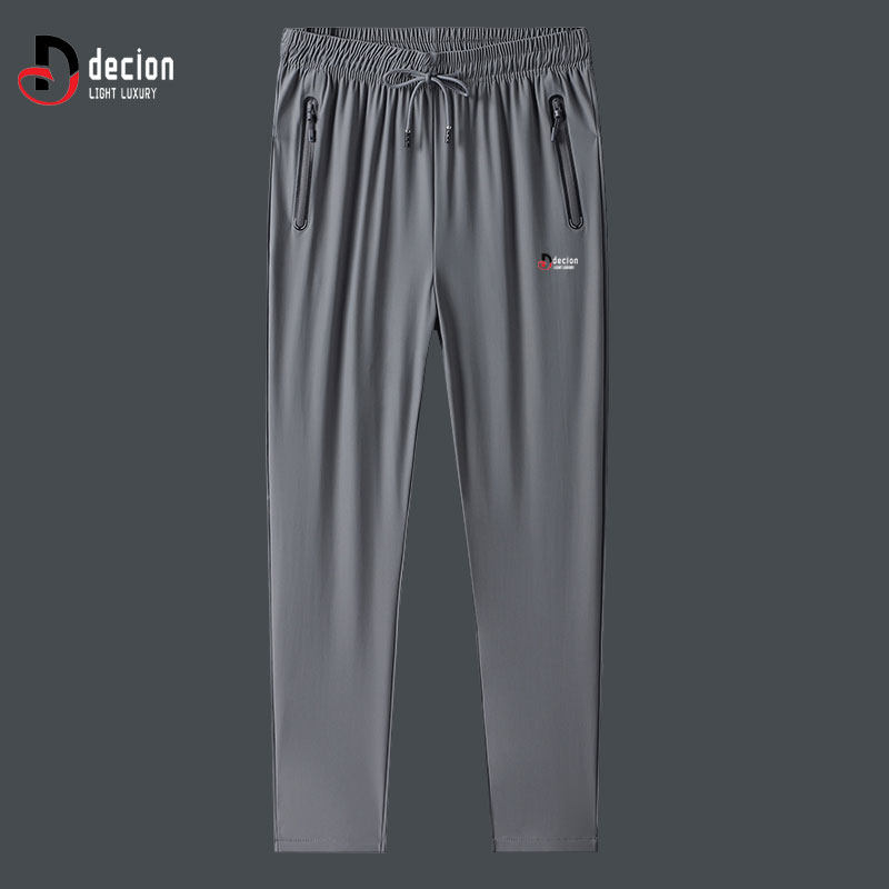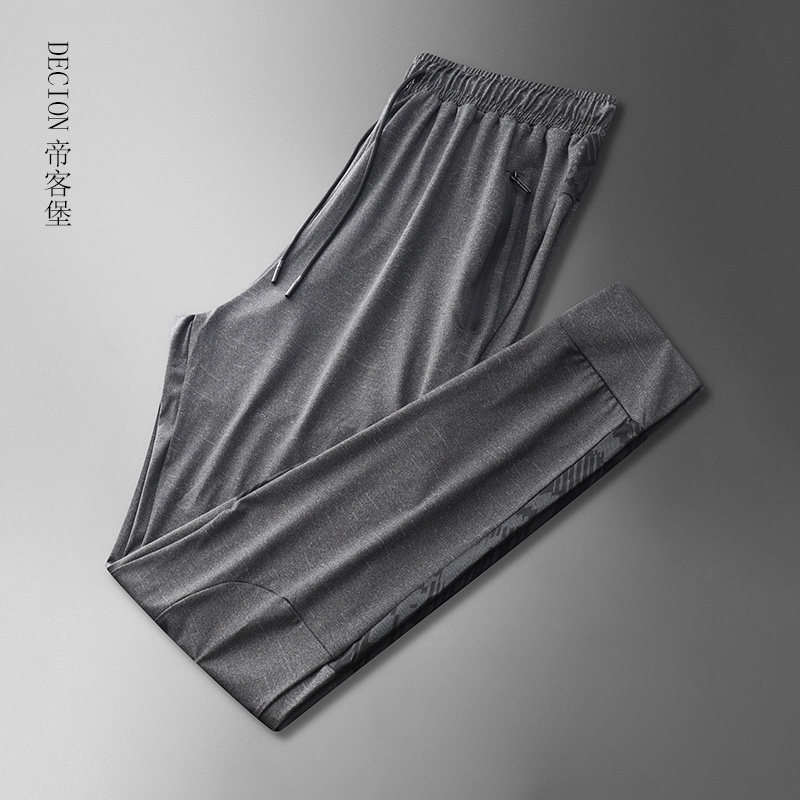 帝客堡高端冰丝休闲裤男士夏季直筒宽松深灰色束脚运动长裤子速干
