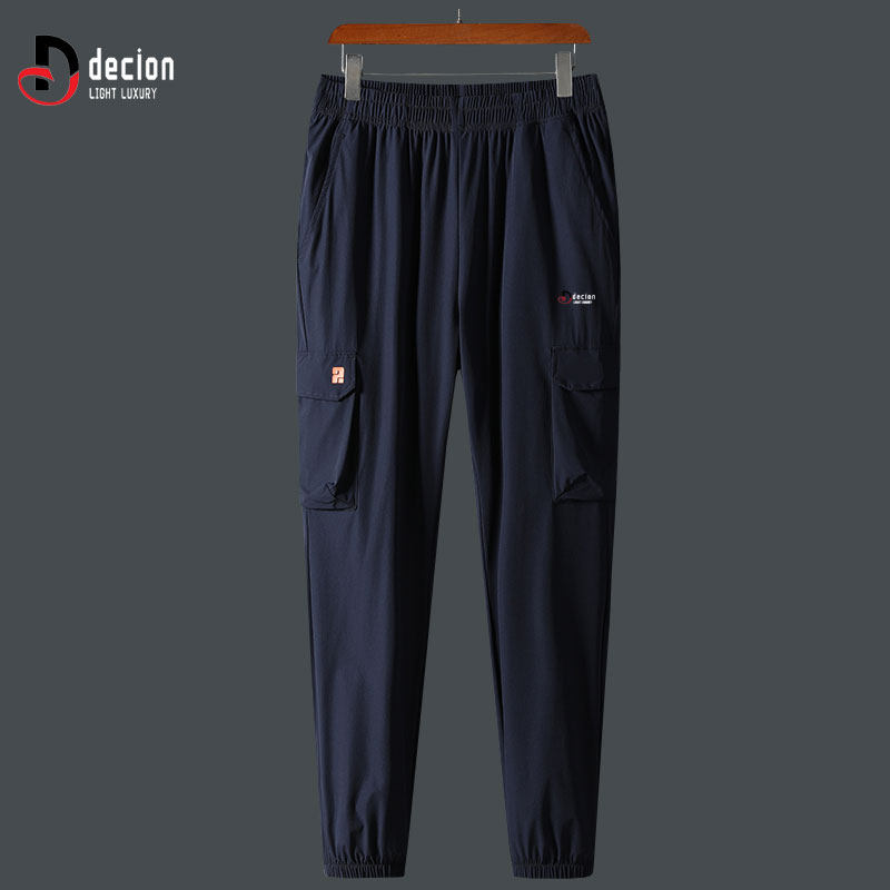 帝客堡冰丝高弹工装休闲裤男士夏季宽松透气速干长裤子运动深蓝色