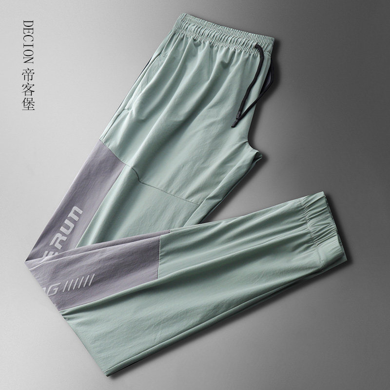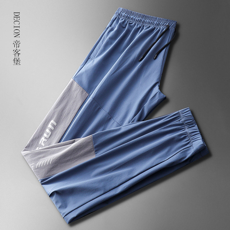 帝客堡冰丝时尚春夏季薄款裤子男士休闲裤男裤超薄拼接速干运动裤