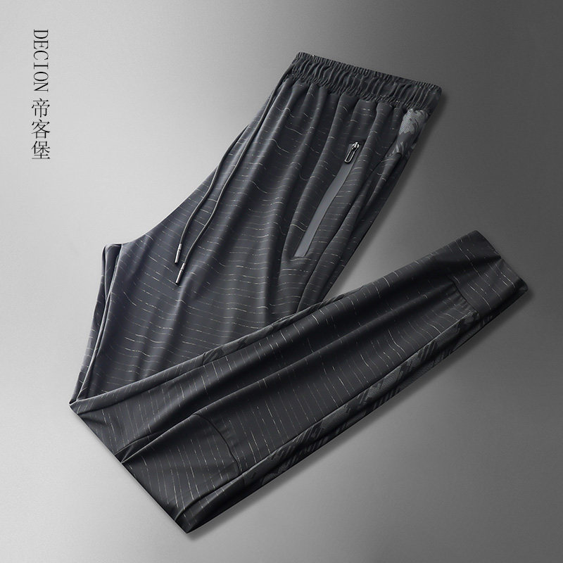 帝客堡冰丝垂感束腿运动裤早秋春夏季薄款裤子弹力男士速干休闲裤