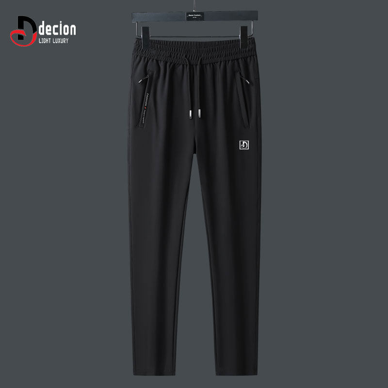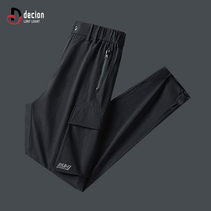 帝客堡高端高弹休闲运动裤男士夏季薄款宽松直筒黑色束脚冰丝速干