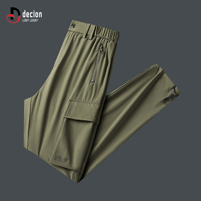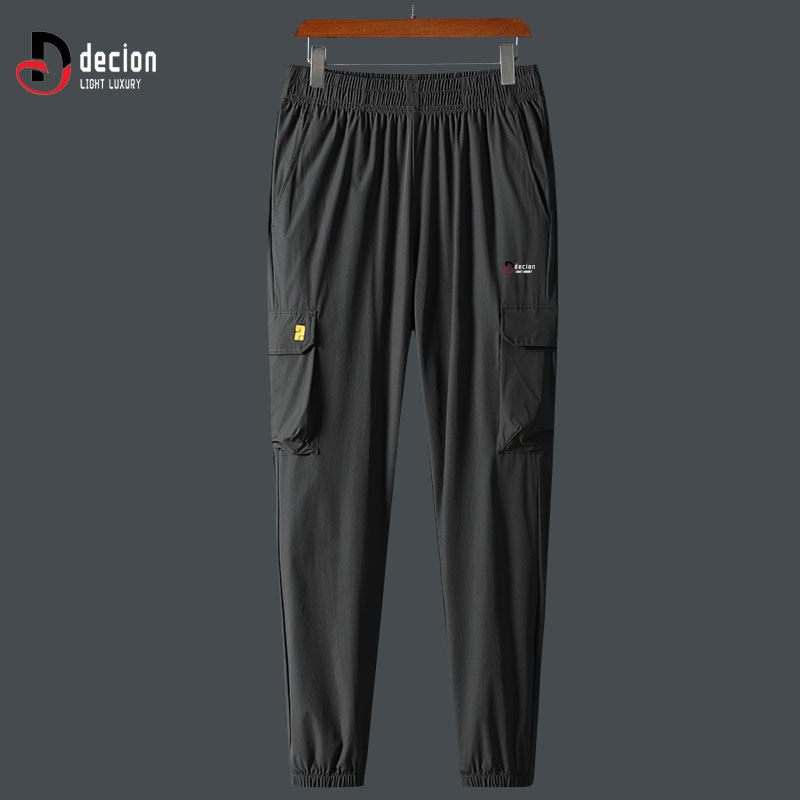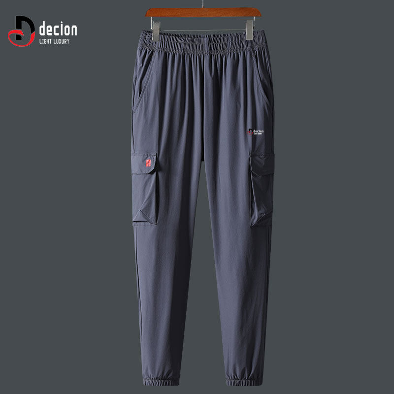 帝客堡冰丝速干高弹休闲裤男士夏季工装立体袋宽松运动长裤子灰色