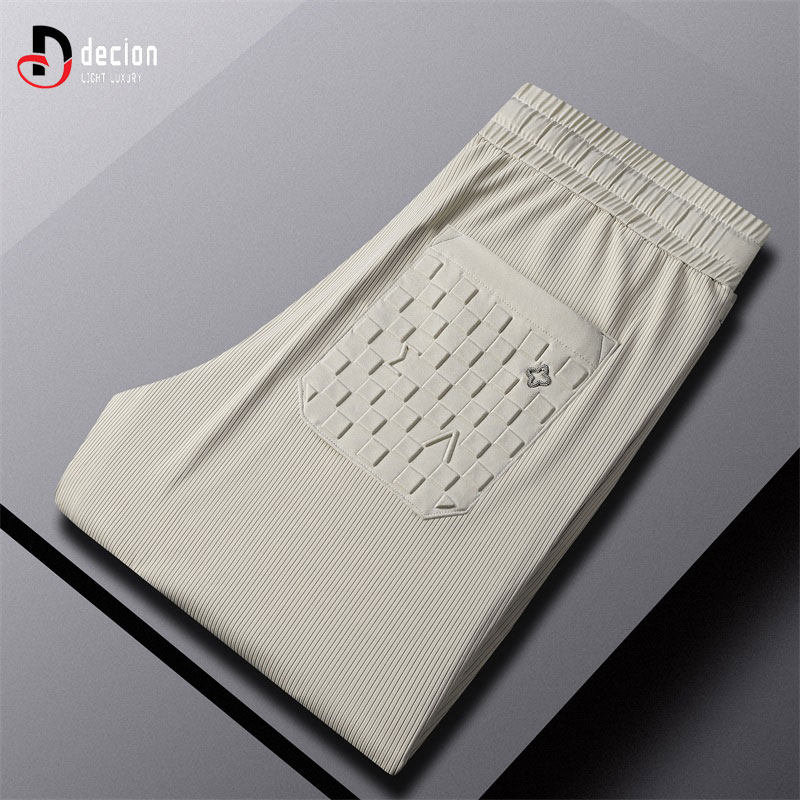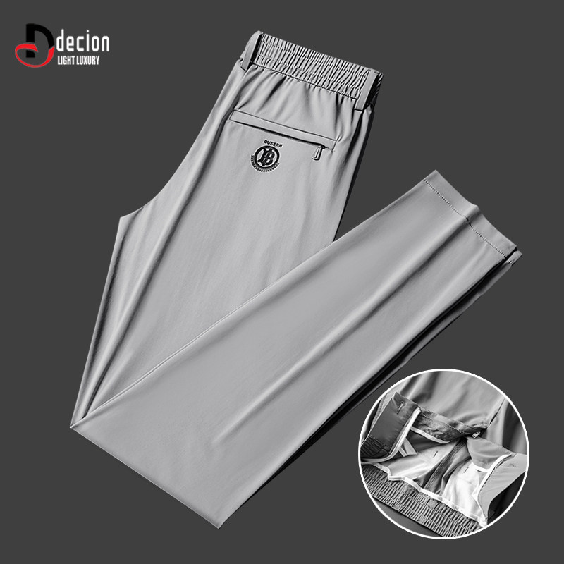 帝客堡轻商务高端休闲裤男士夏季冰丝透气锦纶立体压胶直筒长裤子