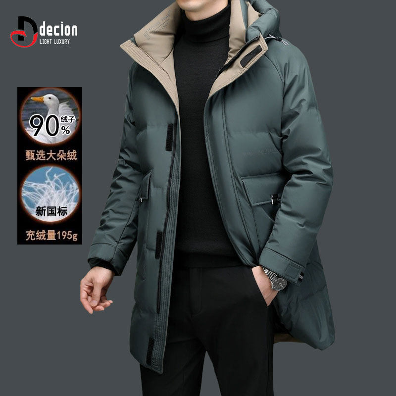 帝客堡高端90鸭绒羽绒服外套男士外套连帽休闲中长款40-50岁秋冬