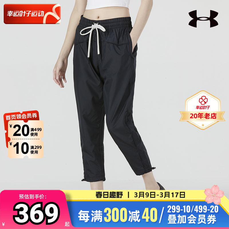 UA安德玛黑色梭织长裤女春季新款运动裤跑步裤子健身训练裤七分裤