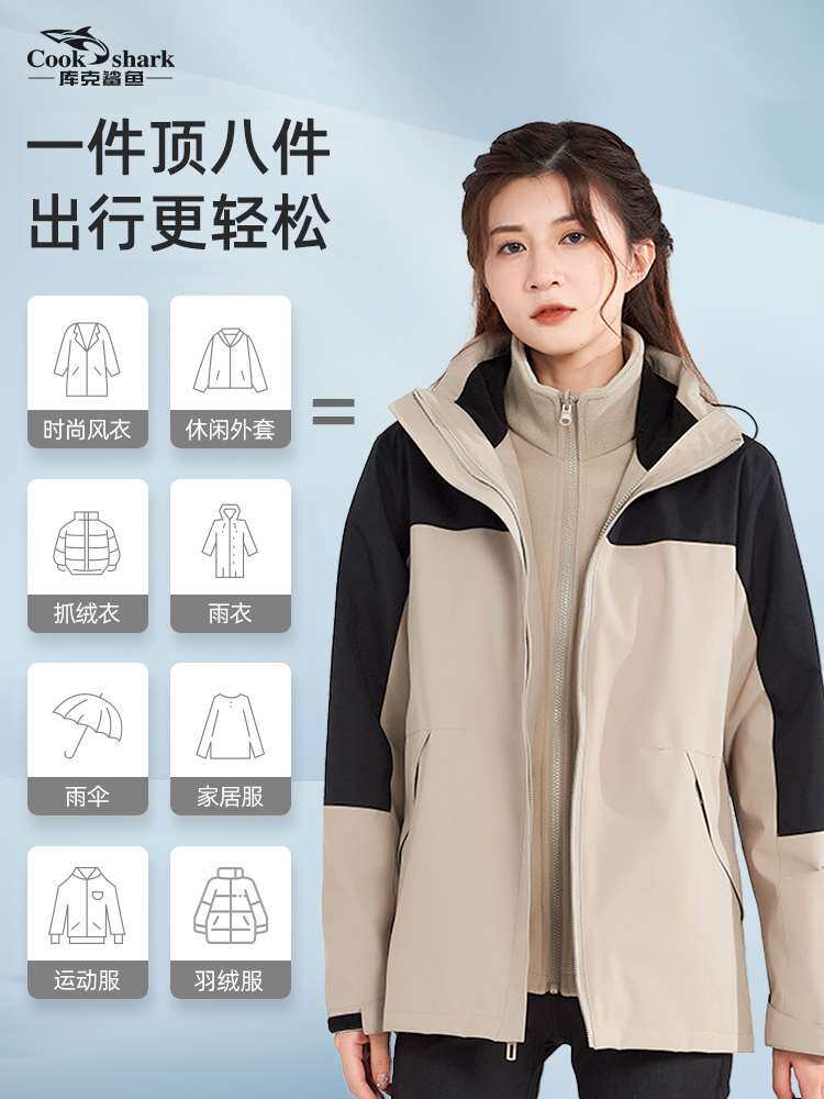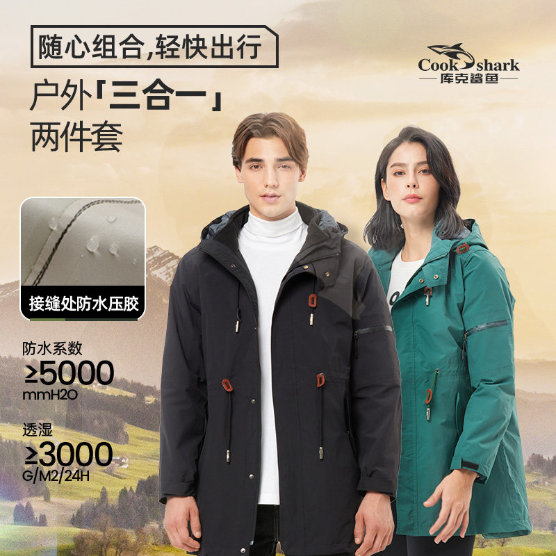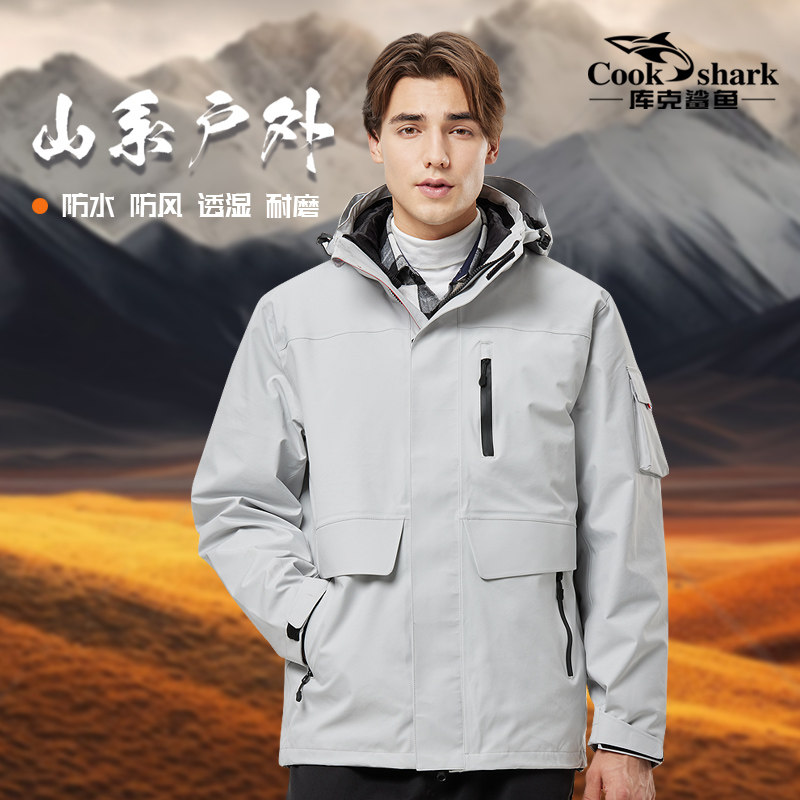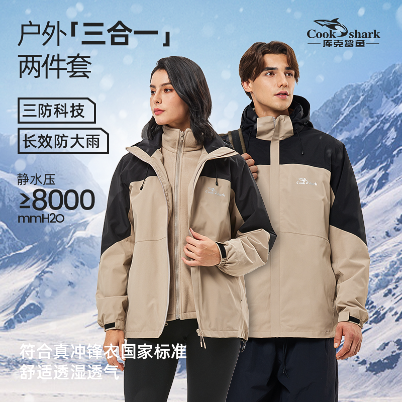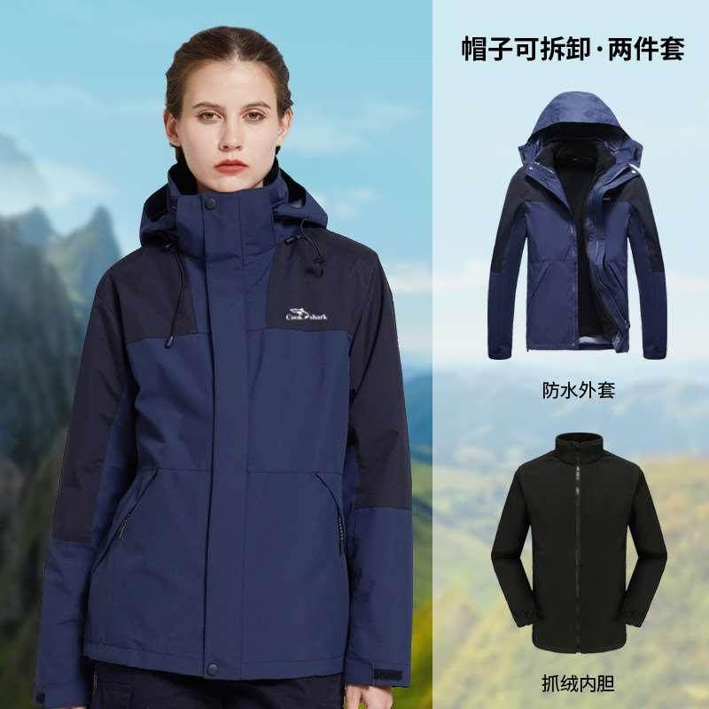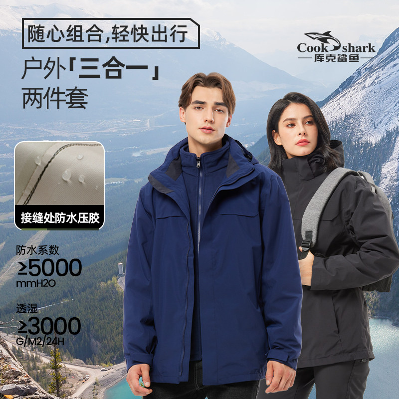 [城市系]库克鲨鱼户外三合一冲锋衣男女防风防水登山服可拆卸外套
