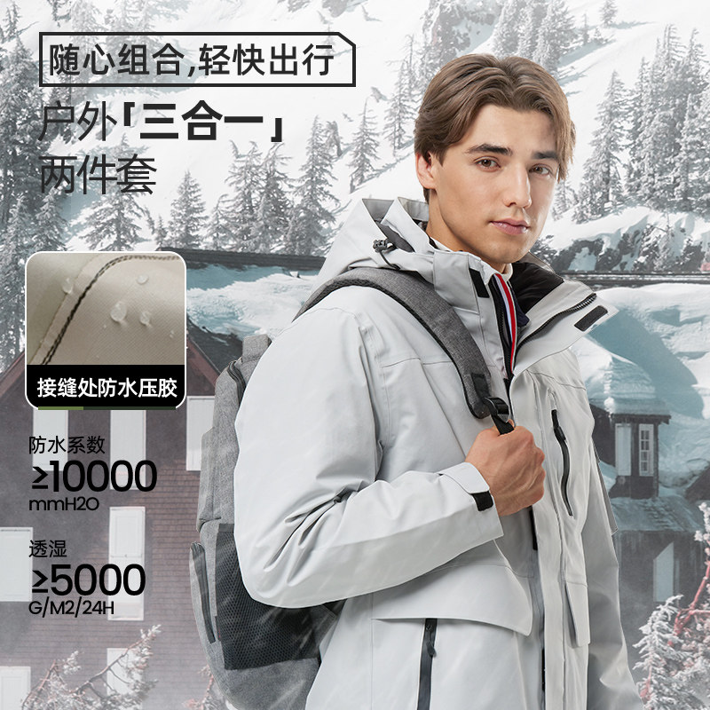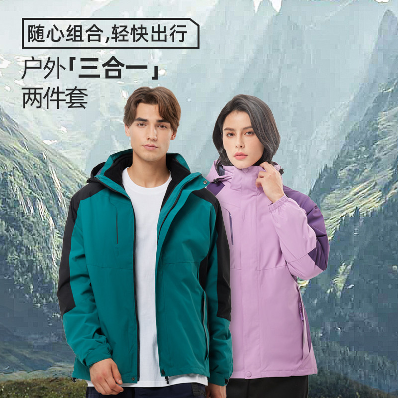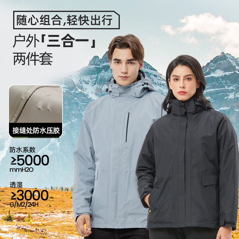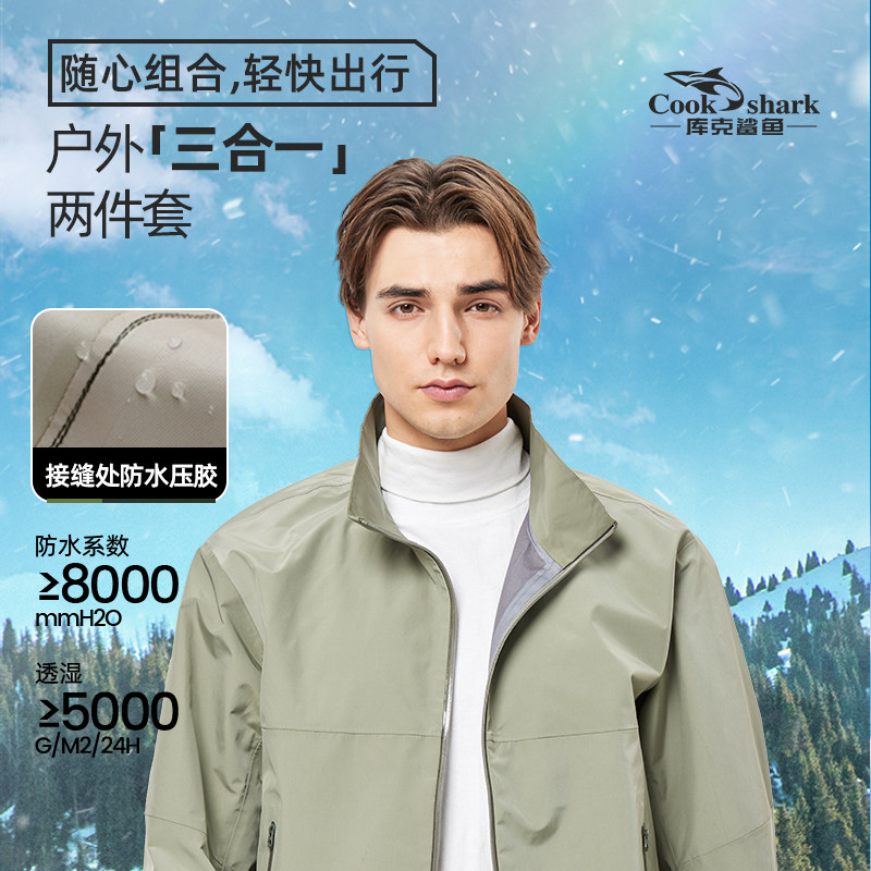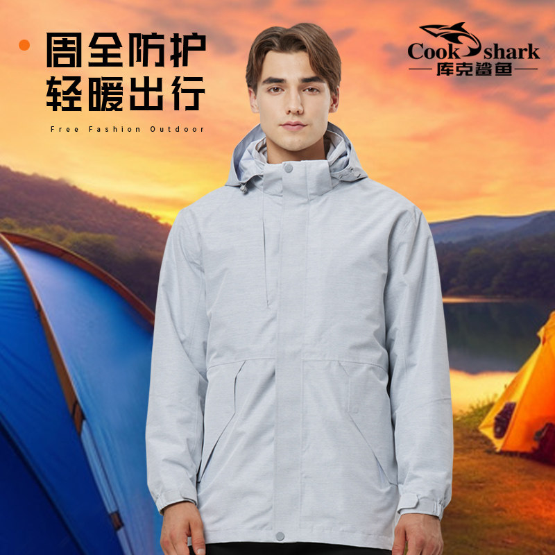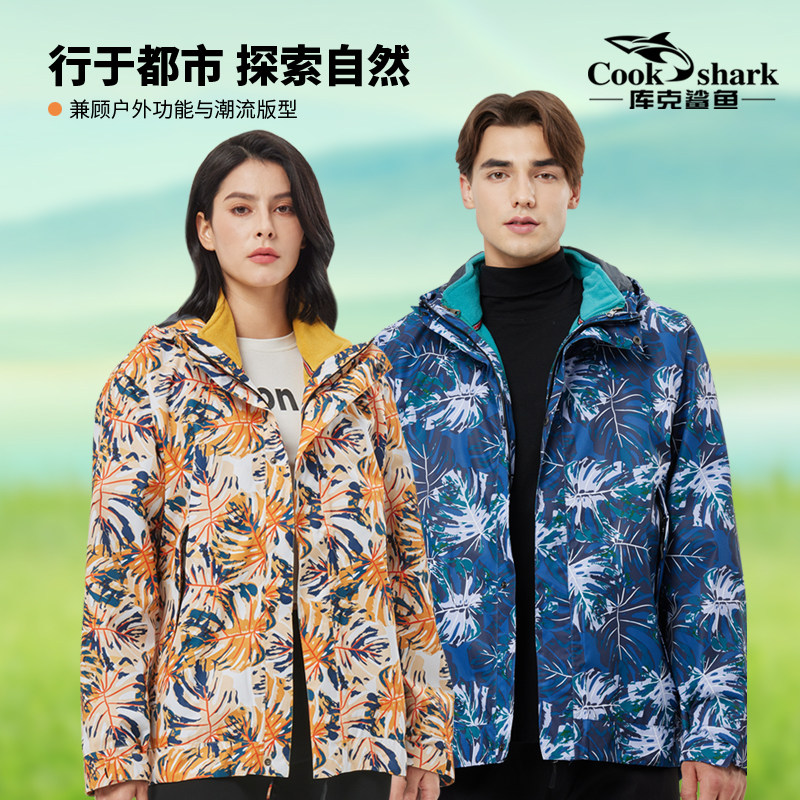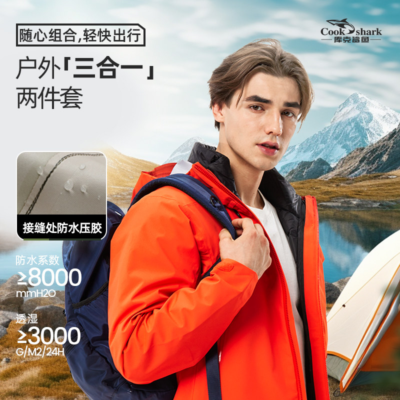 [城市系]库克鲨鱼户外三合一冲锋衣男女防风防水登山服可拆卸外套