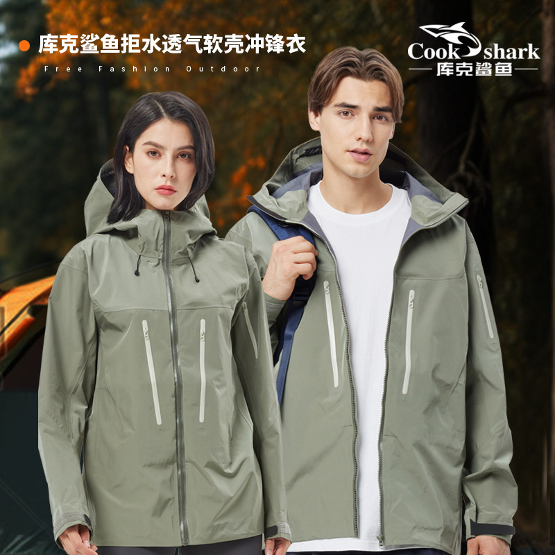 库克鲨鱼户外软壳单层冲锋男防水防风登山服情侣耐磨透气外套衣女