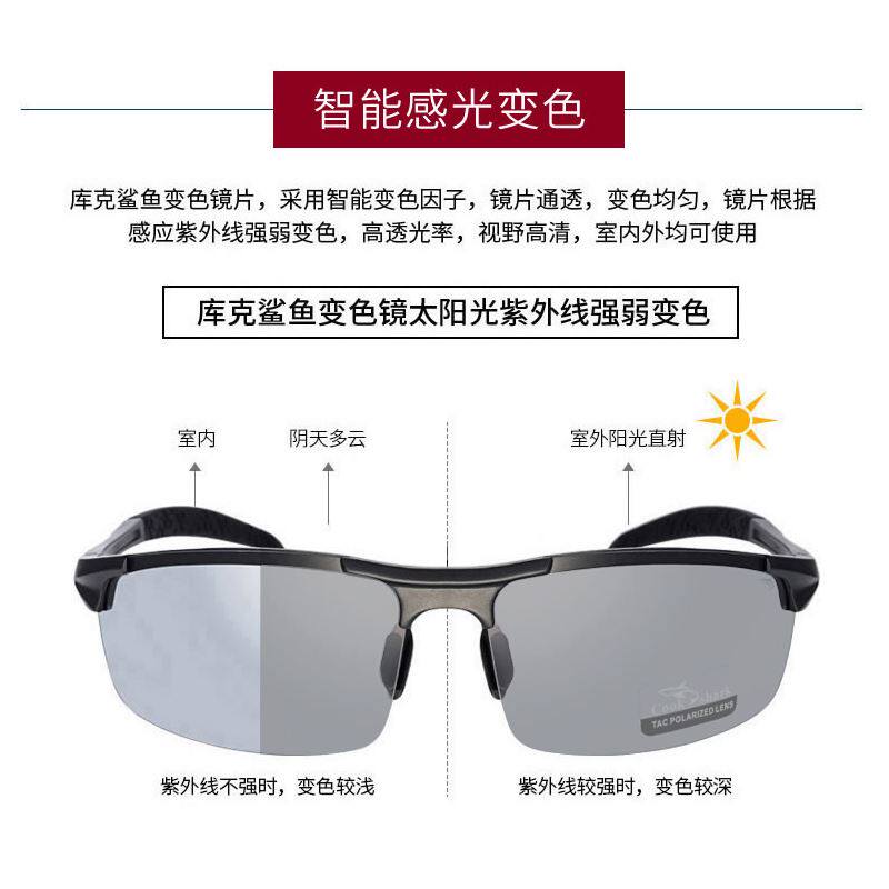 库克鲨鱼偏光镜变色太阳镜男司机钓鱼墨镜日夜两用开车专用眼镜潮