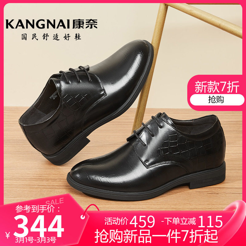 康奈男鞋真皮春季新款系带内增高德比鞋男士英伦风商务正装皮鞋