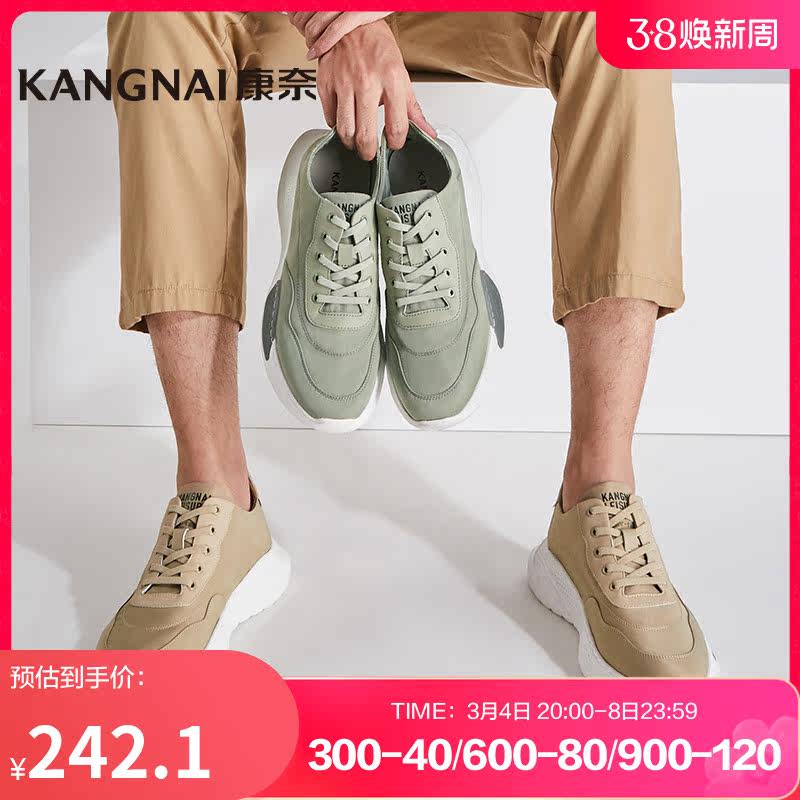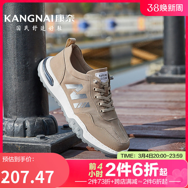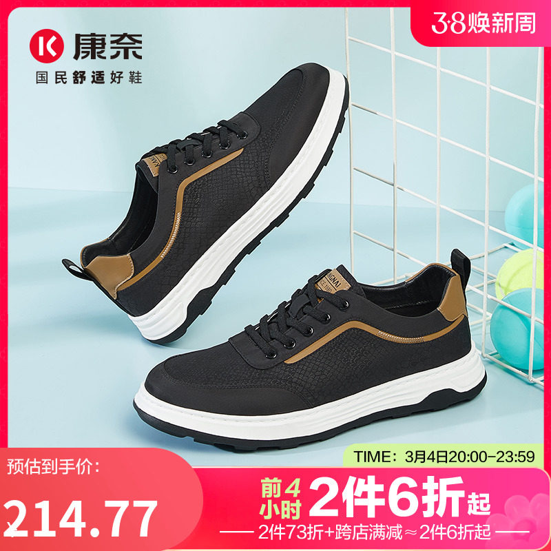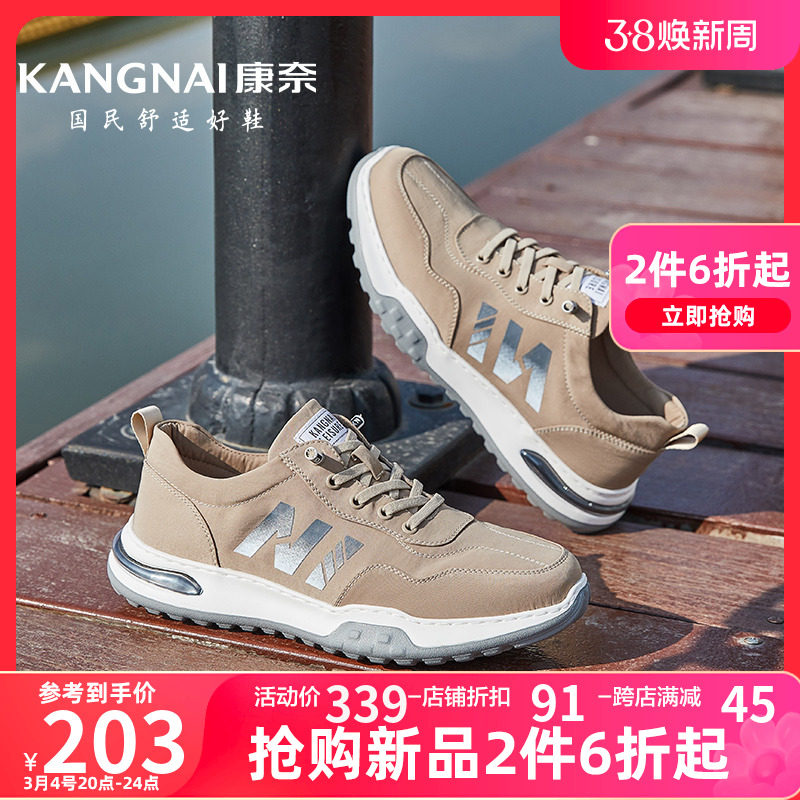 康奈厚底休闲男鞋2024春季新款系带耐磨布鞋男士软底户外运动鞋