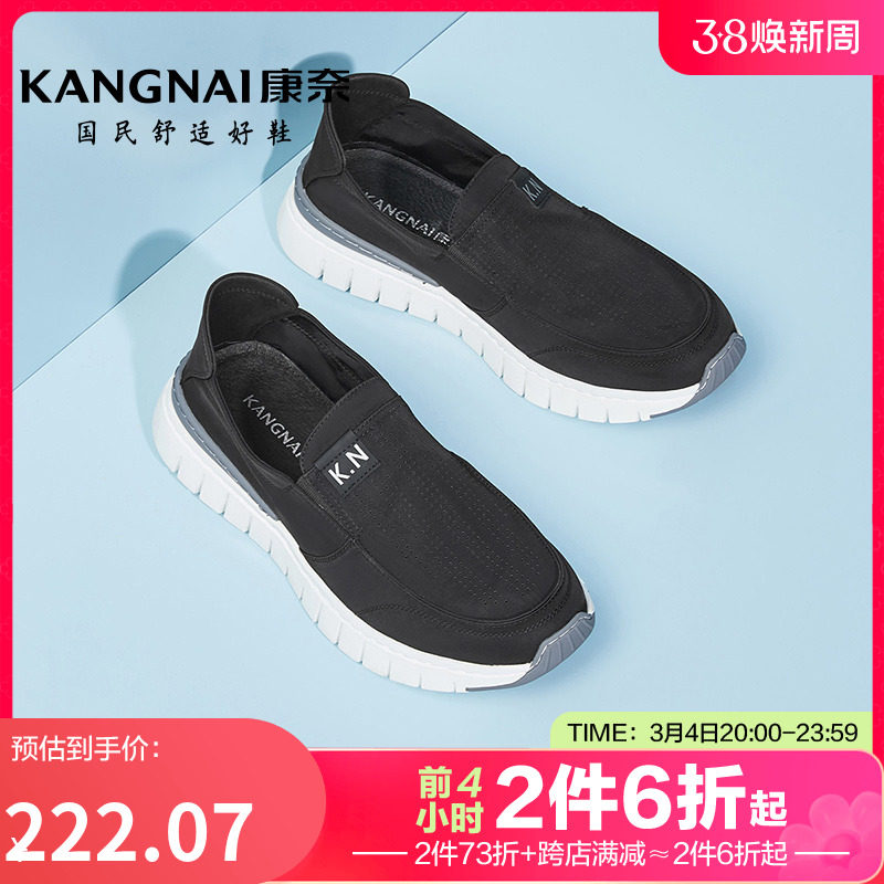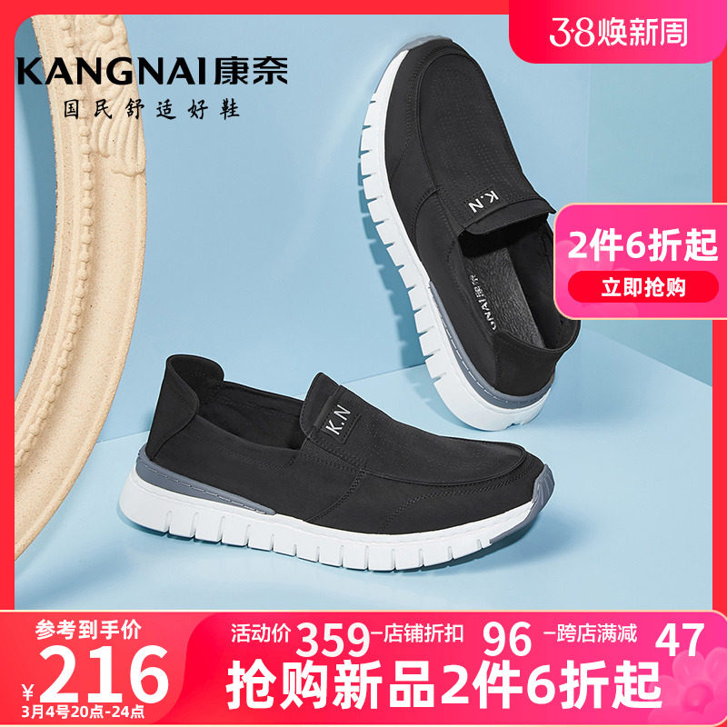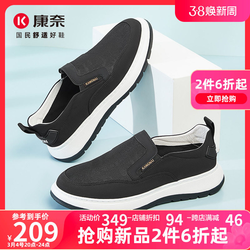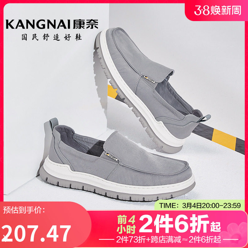 康奈男鞋春季新款一脚蹬布鞋轻便软底运动休闲鞋男士纯色舒适鞋子