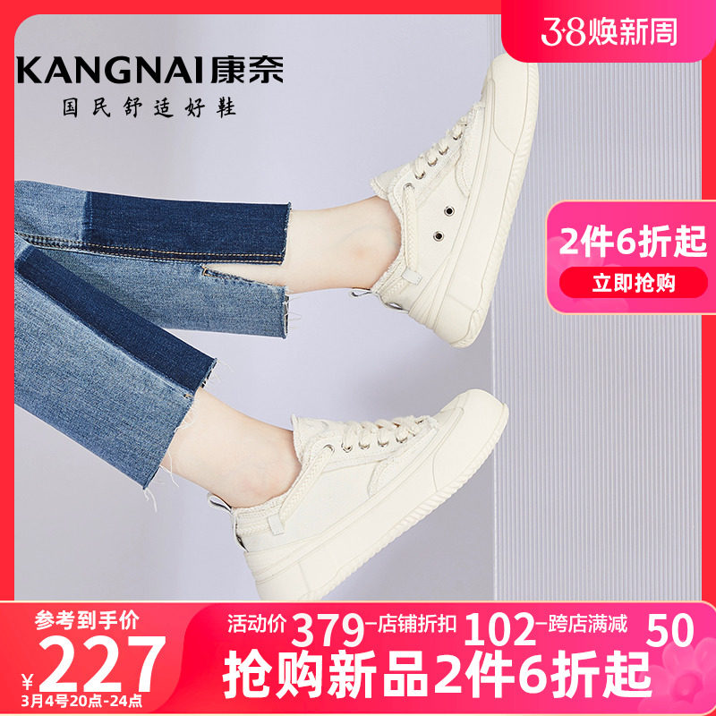 康奈女鞋春季新款深口流苏休闲布鞋系带纯色板鞋防滑耐磨日常鞋子