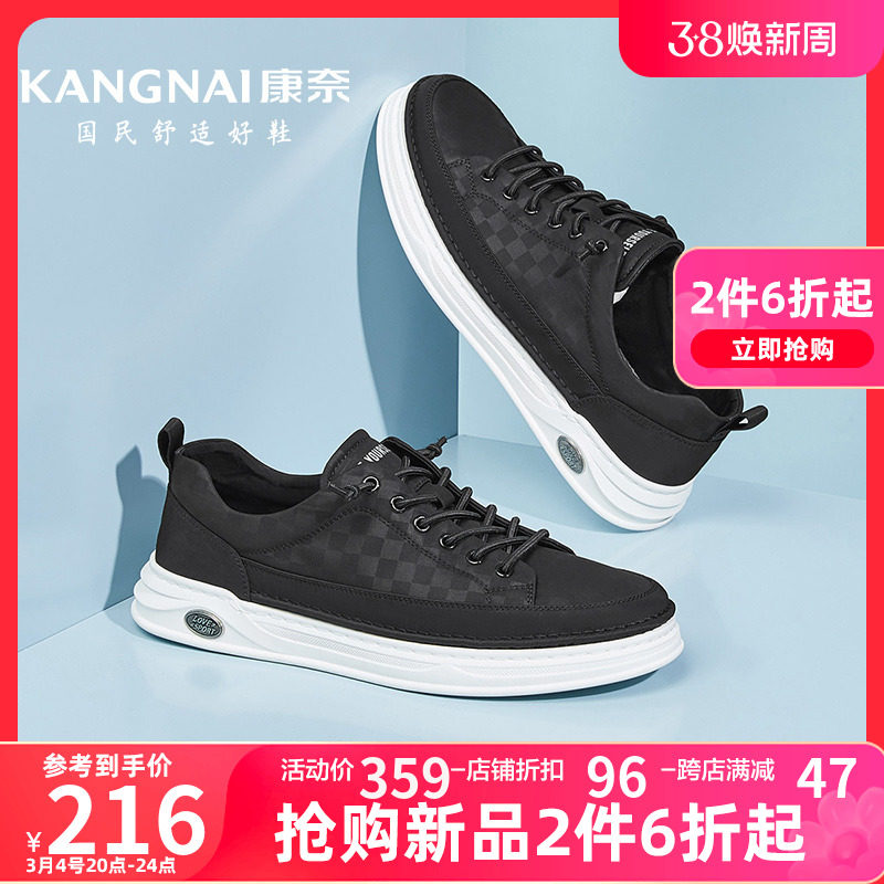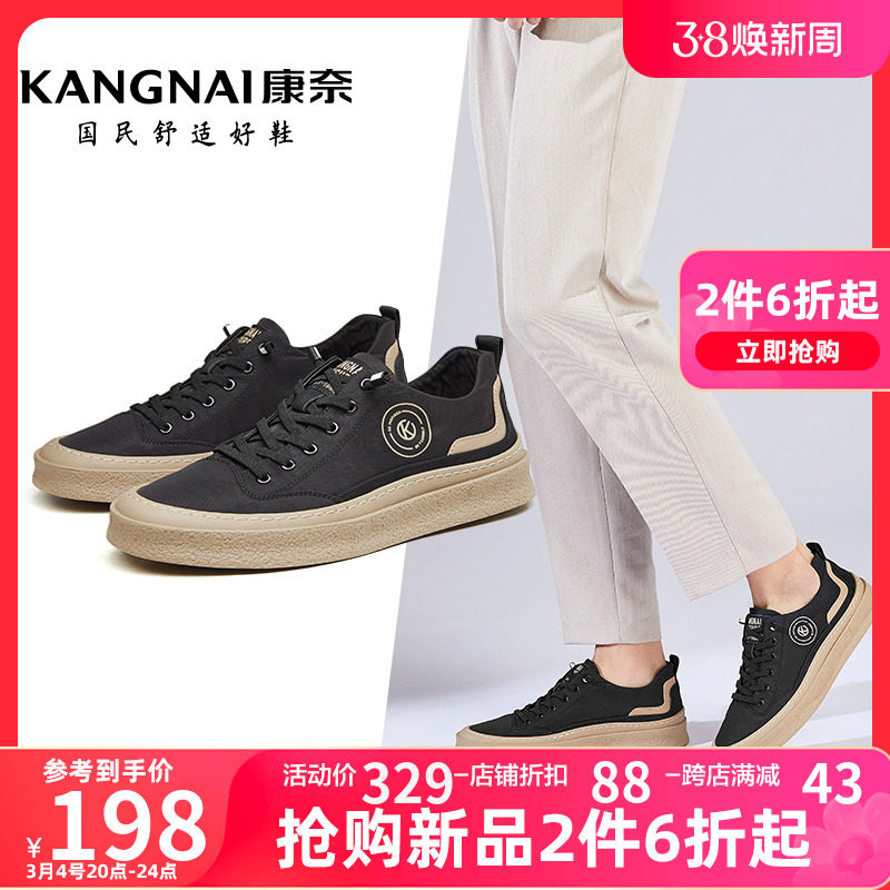 康奈男鞋2024春季新款轻盈软底滑板鞋百搭透气休闲运动鞋厚底布鞋