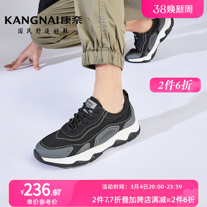 康奈官方男鞋透气网布鞋软底缓震网面运动休闲鞋2024年春夏新品