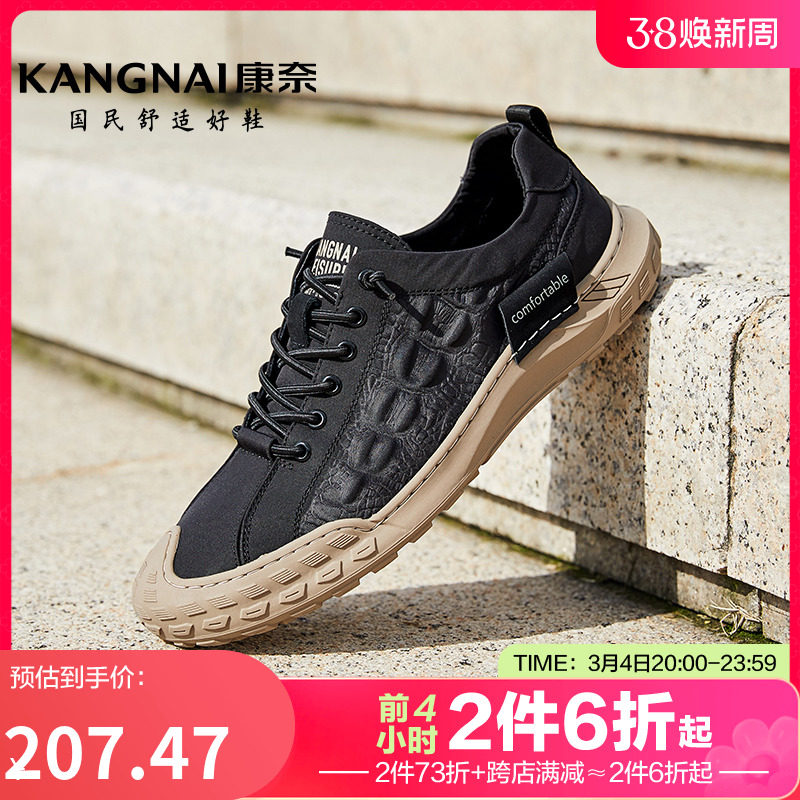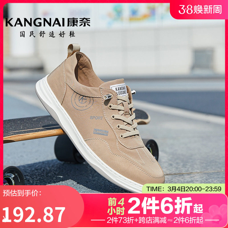 康奈板鞋春季新款系带布鞋男士耐磨休闲鞋子低帮防水软底男鞋子
