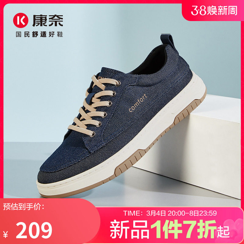 康奈男鞋2024春季新款轻盈软底休闲布鞋潮流百搭透气牛仔布运动鞋