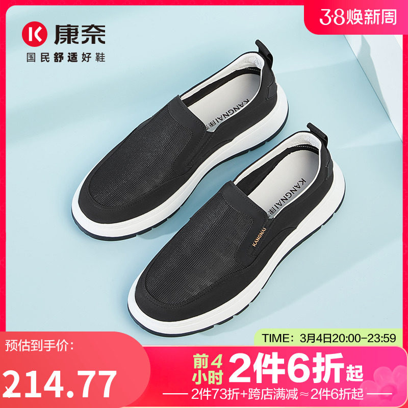康奈2024春新款厚底舒适一脚蹬懒人鞋男士潮流休闲鞋套脚透气布鞋