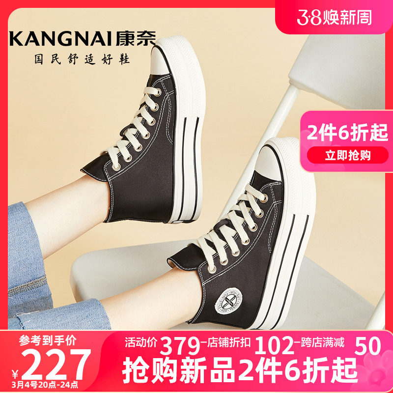 康奈女鞋春季新款防滑耐磨高帮板鞋女士潮流系带布鞋通勤休闲鞋子