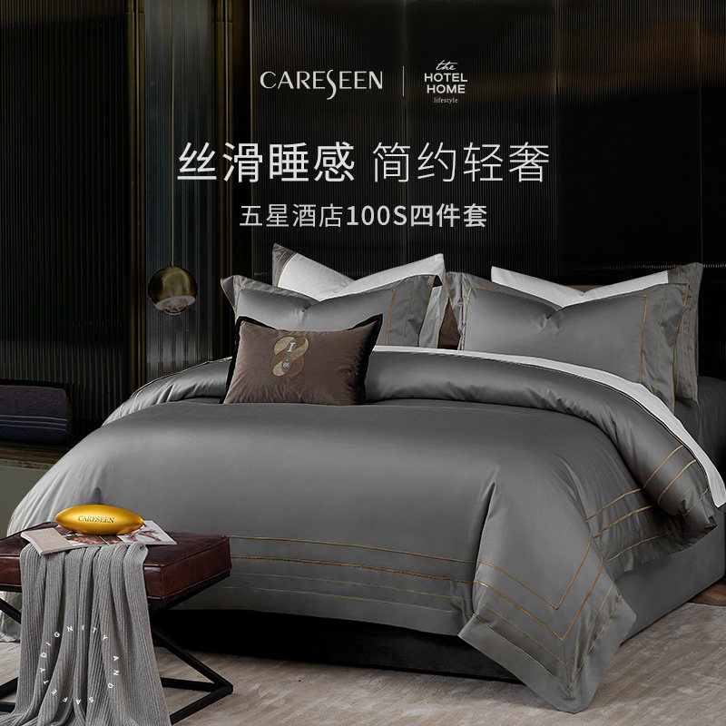 希尔顿轻奢100支纯棉四件套高级感全棉床单被套高档酒店床上用品