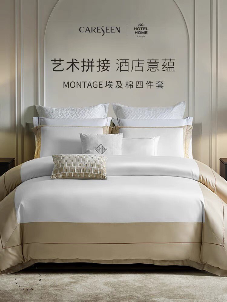 康尔馨2023年新款全棉蒙太奇四件套进口埃及棉轻奢高级感纯棉床品