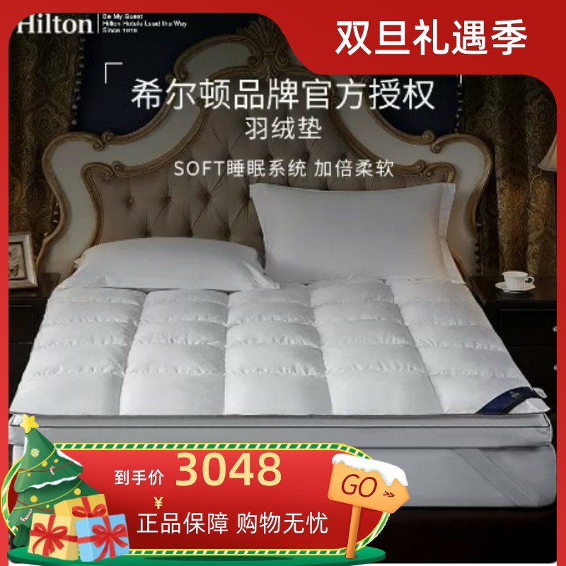 希尔顿品牌授权羽绒床垫酒店床垫褥子双人家用床白鹅绒床垫软垫新