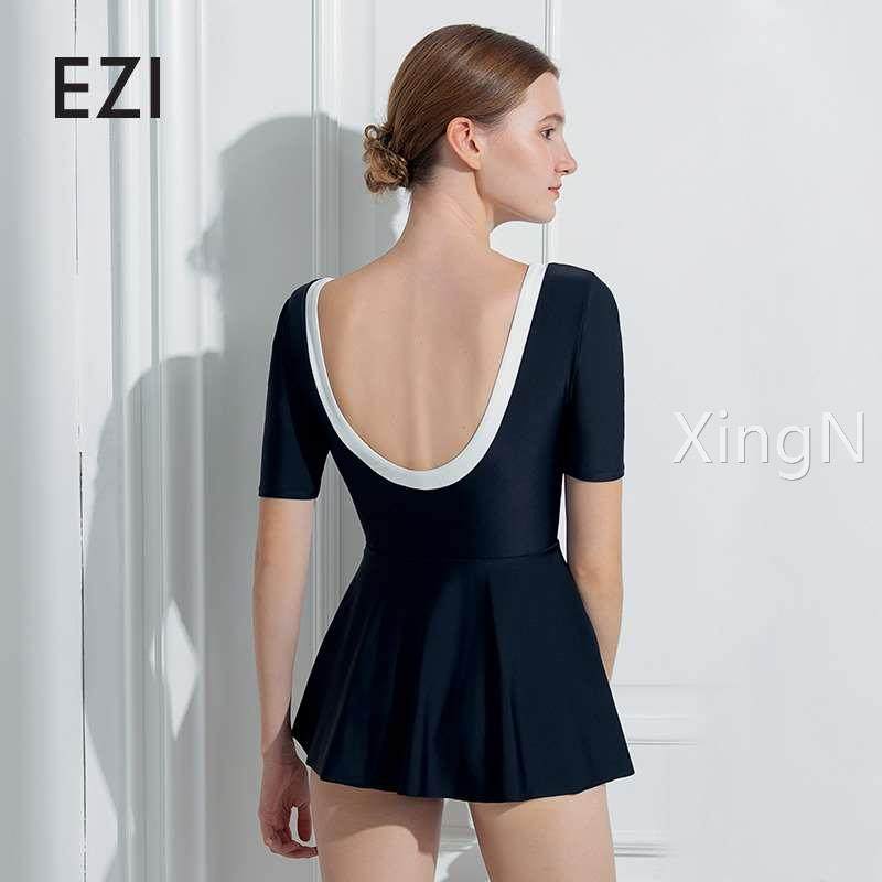 弈姿新款连体裙式吊带泳衣女夏露背显瘦游泳衣泡温泉度假小黑裙