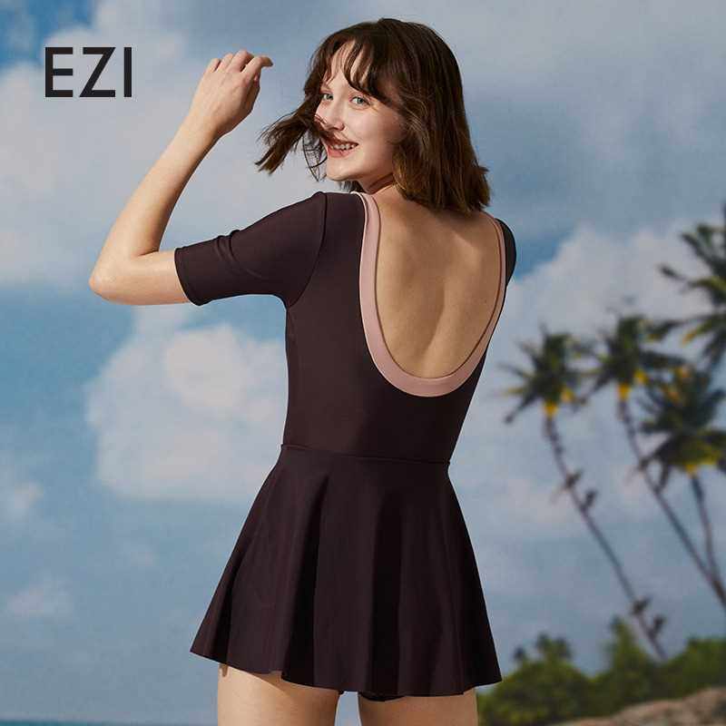 弈姿旗舰店新款防晒连体女式夏季泳衣显瘦保守三角露背度假泳装女