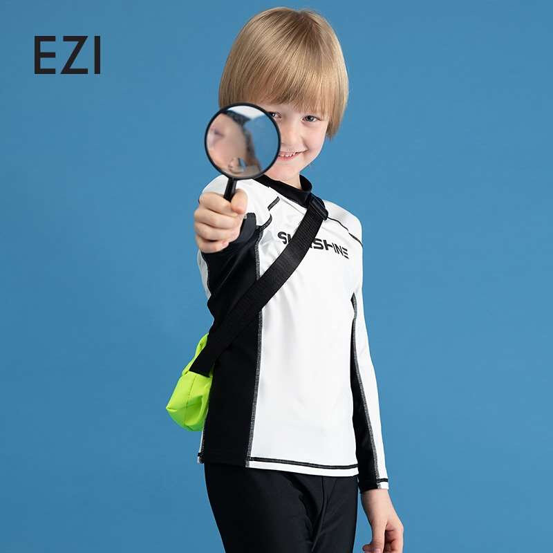 弈姿2021新款男童学生防晒泳衣趣味长袖分体泳衣酷炫沙滩冲浪