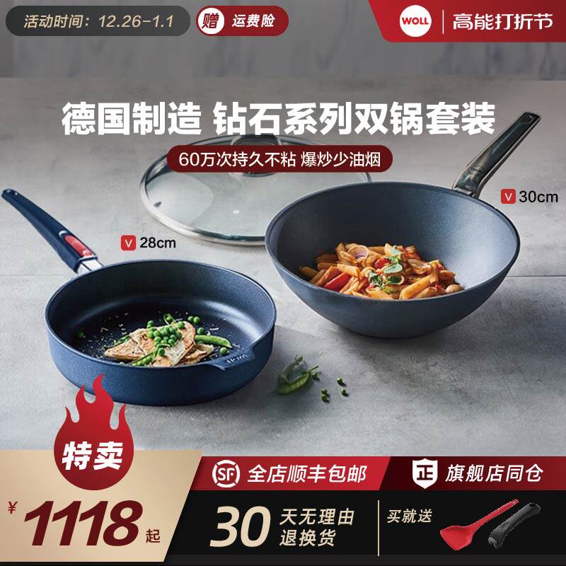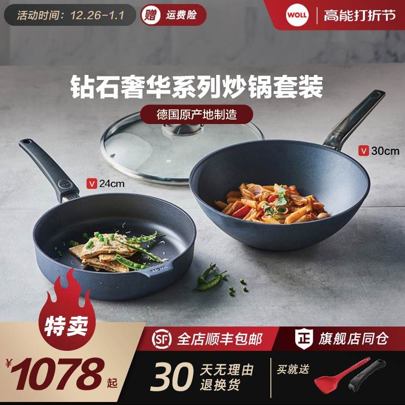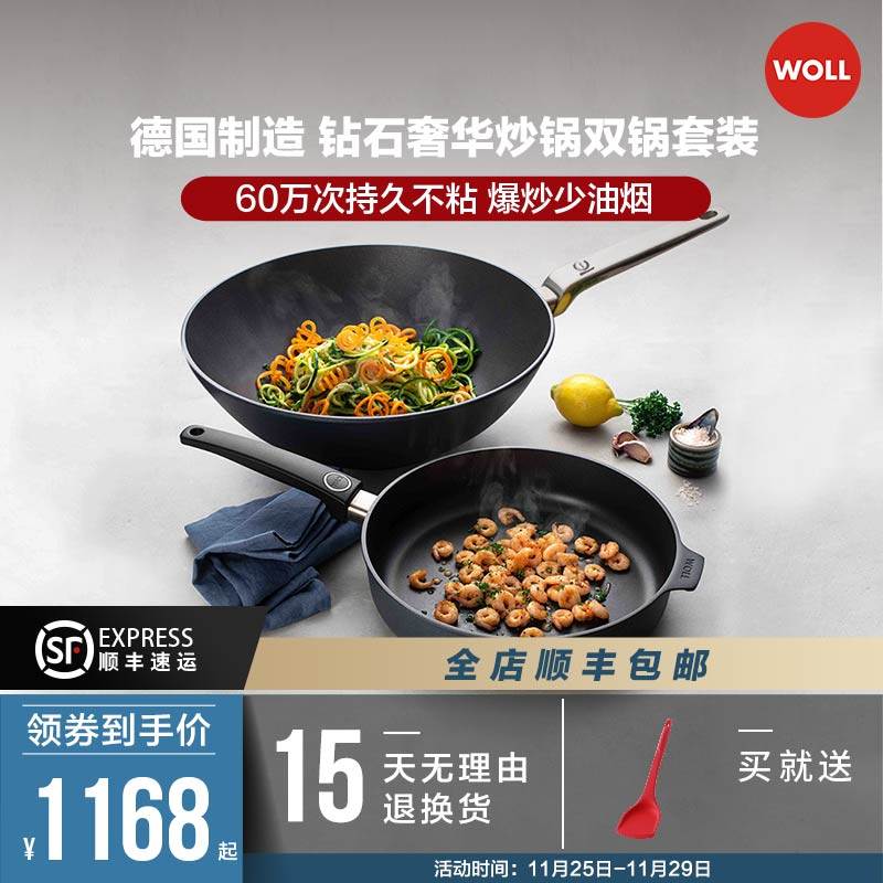 WOLL德国进口不粘锅炒锅平底锅钻石系列32/28炒锅煎炒不粘锅套装