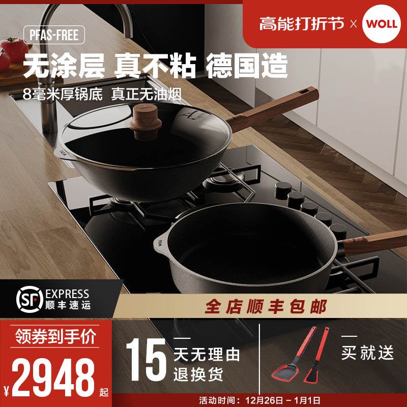 新品WOLL德国进口不粘锅炒锅家用炒菜锅燃气灶用平底煎炒锅