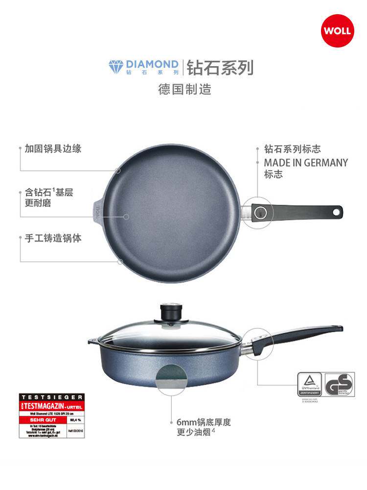 WOLL德国进口不粘锅炒锅家用钻石系炒菜不粘锅平底煎锅奶锅
