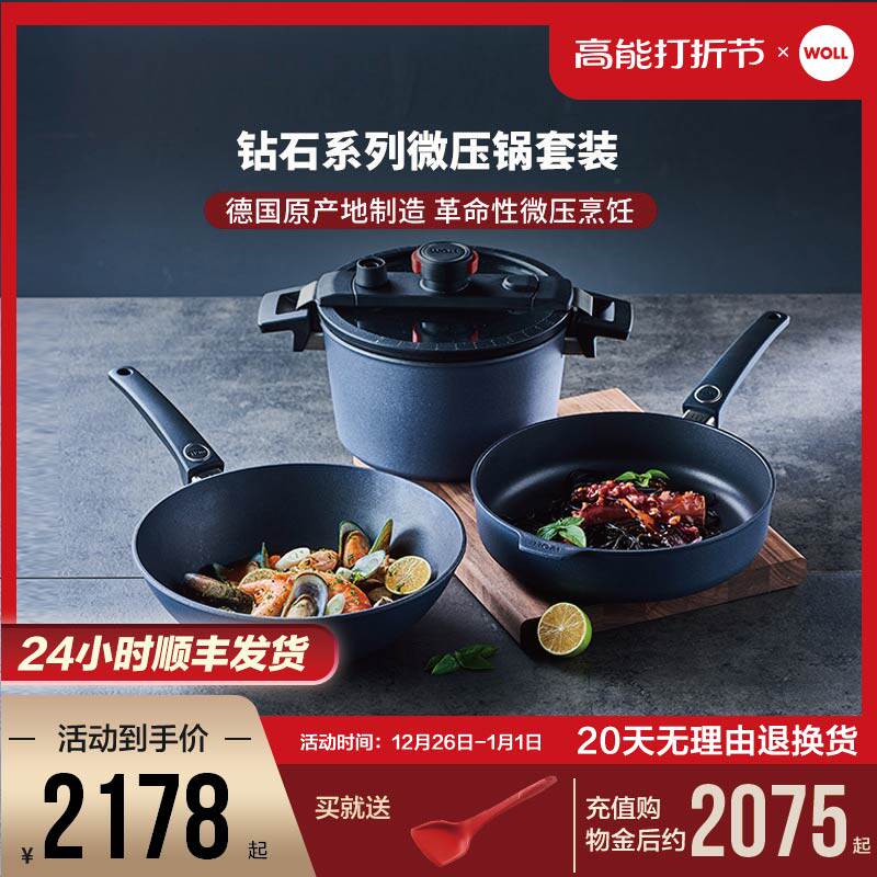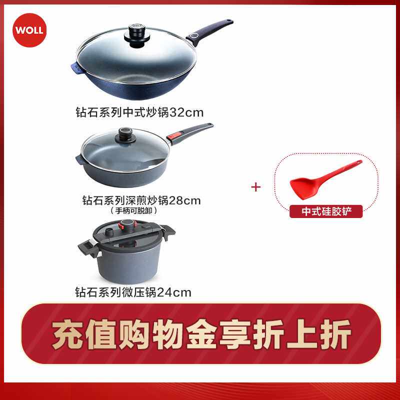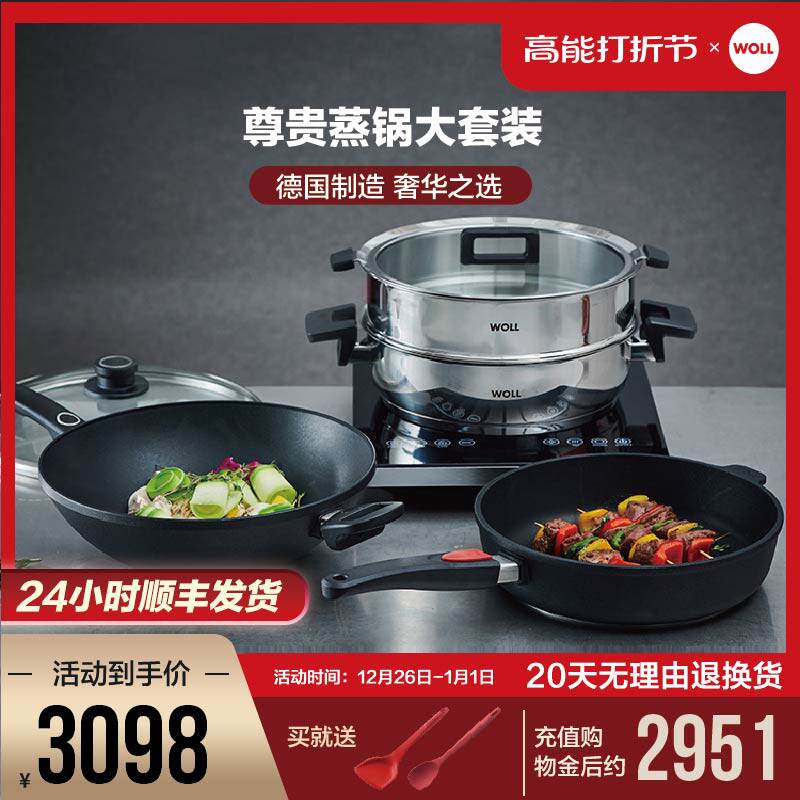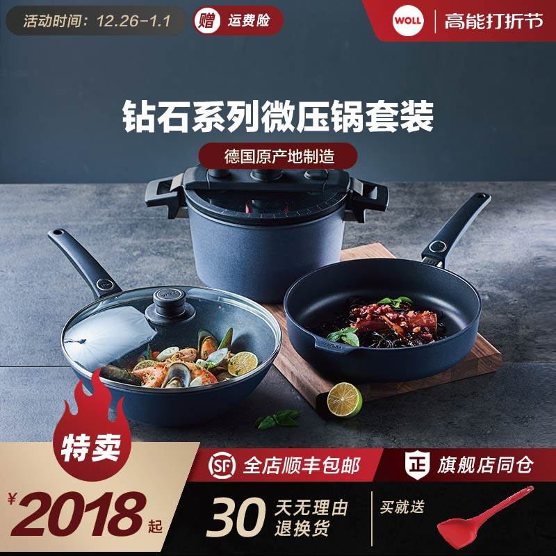 正品钻石系列WOLL德国进口不粘炒锅平底锅微压锅锅具套装组合三件