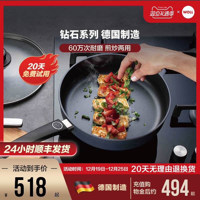 新品WOLL德国进口不粘锅平底煎炒锅家用钻石XR燃气灶用煎锅平底锅