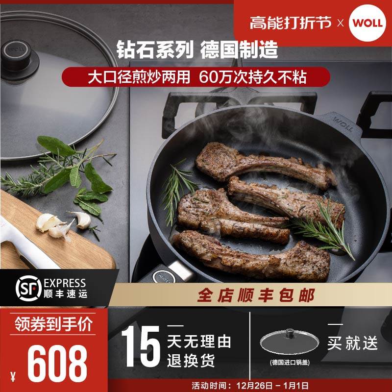 新品WOLL德国进口不粘锅炒锅煎锅钻石XR炒菜锅燃气灶用平底煎炒锅