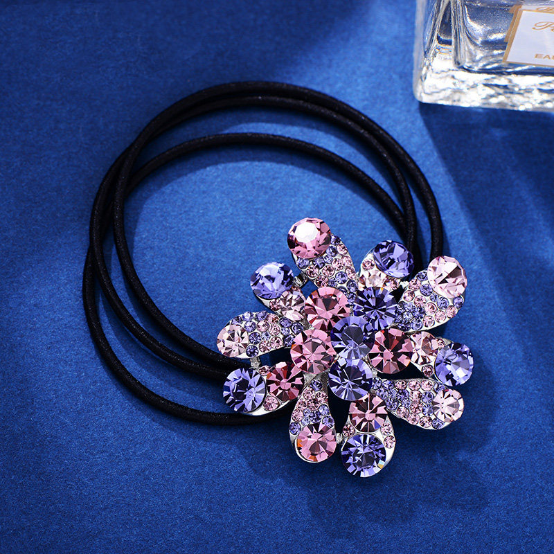 韩版发饰发绳简约水钻花朵发饰扎头发橡皮筋水钻发圈发带头绳头饰