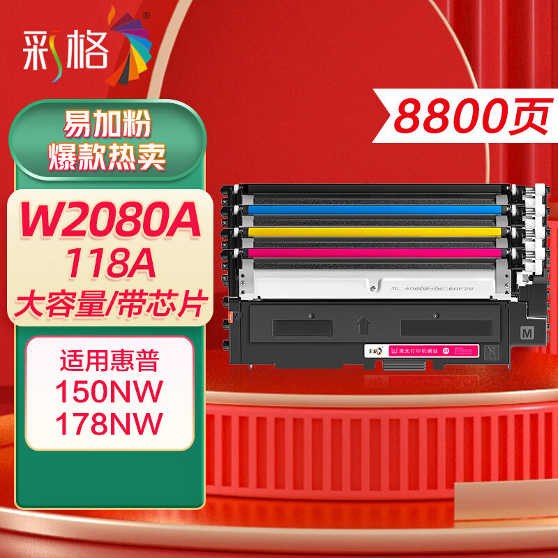 彩格178nw硒鼓适用惠普118a硒鼓W2080a粉盒hp 179fnw墨盒M150nw 150a彩色打印机 带芯片墨粉盒易加粉