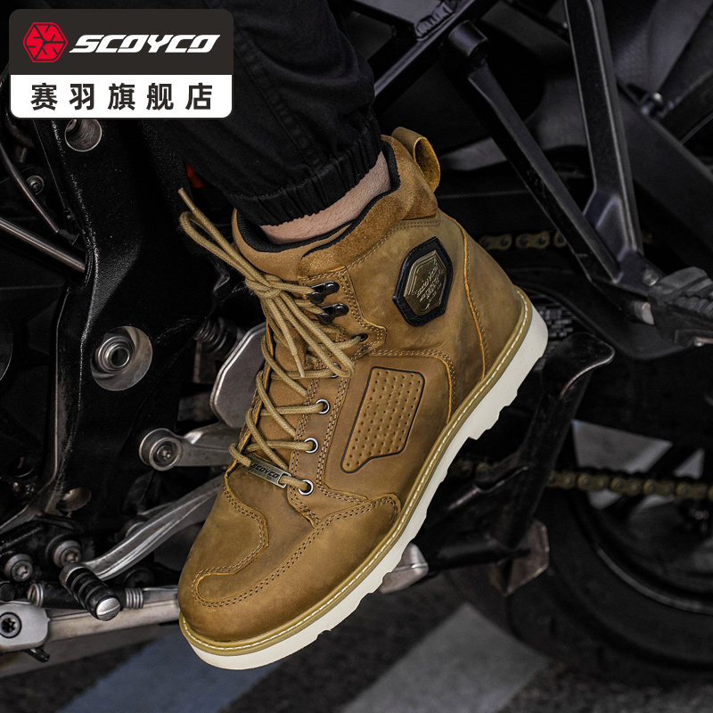 赛羽SCOYCO摩托车骑行鞋复古牛皮重机车防摔赛车鞋休闲靴子征服者