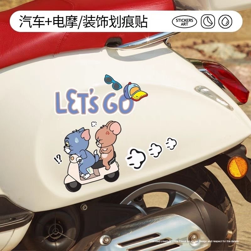 猫和老鼠电动车贴纸装饰可爱创意个性汽车划痕遮挡贴画摩托车防水