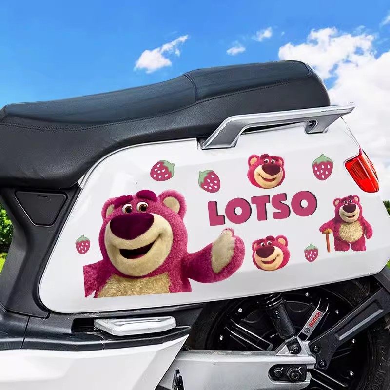 个性可爱创意草莓熊电动车贴纸摩托装饰防水车身划痕遮挡车贴纸